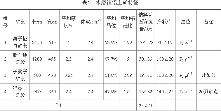 (2)圈定找礦靶區(qū)面積15km2,開展了1∶10000專項地質(zhì)填圖及槽探工作,初步估算4個礦段礦石資源量2010萬t(表1),具有發(fā)現(xiàn)大型鋁土礦的潛力。目前,1∶10000專項地質(zhì)填圖及槽探工作正在進行中。