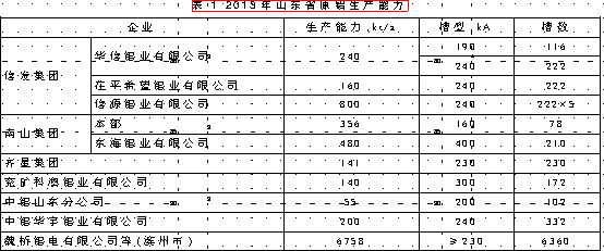 2014年10月28日,山東省人民政府網(wǎng)上發(fā)布了由山東省冶金工業(yè)總公司、山東省金屬學(xué)會編制的《山東有色金屬產(chǎn)業(yè)轉(zhuǎn)型升級實施方案》,對山東省有色金屬產(chǎn)業(yè)的總體發(fā)展現(xiàn)狀、未來的發(fā)展趨勢及策略做了綜合性的介紹和分析。《方案》稱:2013年山東省原鋁產(chǎn)量6720kt,占全國產(chǎn)量的30.5%,生產(chǎn)能力9330kt/a,產(chǎn)能利用率72%。2013年,根據(jù)北京安泰科信息開發(fā)有限公司的數(shù)據(jù),山東生產(chǎn)原鋁的企業(yè)共7家,除魏橋鋁電有限公司外,其他6家的生產(chǎn)(表1)能力共2572kt/a,由此可計算出魏橋鋁電有限公司的原鋁生產(chǎn)能力為6758kt/a,2013年的產(chǎn)量不會低于5700kt(筆者估計)。