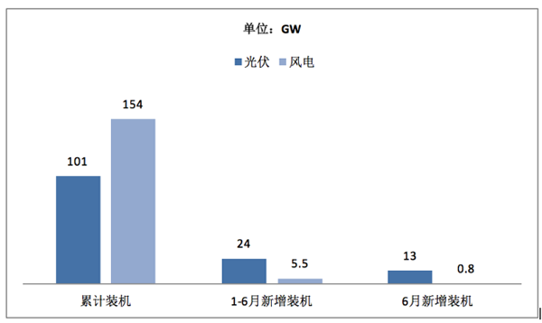 再看新能源內(nèi)部情況,昨天國家可再生能源中心公布了2017年1-6月份光伏、風(fēng)電的裝機(jī)數(shù)據(jù)。