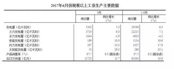 昨天,國家統(tǒng)計局發(fā)布了上半年統(tǒng)計數(shù)據(jù),2017年1-6月份規(guī)模以上工業(yè)發(fā)電量29598億千瓦時,同比增長6.3%。其中新能源方面,太陽能發(fā)電量289億千瓦時,同比增長最快,達(dá)35.1%;風(fēng)力發(fā)電量1327億千瓦時,同比增長17.9%。