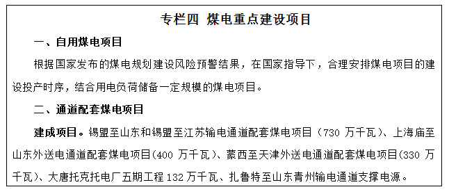 穩(wěn)步推進(jìn)煤電基地建設(shè)。綜合考慮國(guó)家能源發(fā)展戰(zhàn)略、受端電力市場(chǎng)需求等因素,合理安排煤電基地建設(shè)時(shí)序。重點(diǎn)圍繞鄂爾多斯、錫林郭勒、呼倫貝爾三個(gè)以電力外送為主的大型煤電基地,積極推進(jìn)高參數(shù)、大容量先進(jìn)燃煤發(fā)電機(jī)組建設(shè),新建燃煤發(fā)電項(xiàng)目原則上采用60萬(wàn)千瓦及以上超超臨界機(jī)組。鄂爾多斯煤電基地重點(diǎn)推進(jìn)上海廟-山東、蒙西-天津南等輸電通道配套煤電建設(shè);錫林郭勒煤電基地重點(diǎn)推進(jìn)錫盟-山東、錫盟-江蘇等輸電通道配套煤電建設(shè);呼倫貝爾煤電基地積極啟動(dòng)呼倫貝爾外送輸電通道配套煤電建設(shè)。
