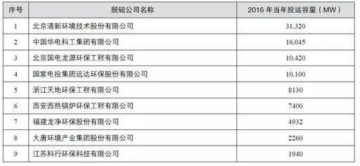 (按2016年投運(yùn)的煙氣脫硫新建機(jī)組容量大小排序)