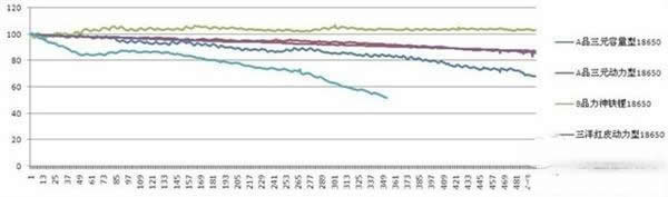 鋰電風(fēng)暴實(shí)測不同電芯鋰電池500次循環(huán)充放電后容量損耗