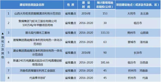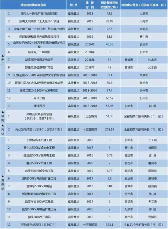 山西省土地利用總體規(guī)劃“十三五”新增重點(diǎn)建設(shè)工程(項(xiàng)目)及用地情況詳情: