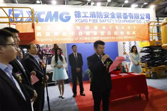 11月1日9時(shí)58分,徐工集團(tuán)與印度MTANDT公司高空作業(yè)平臺批量出口簽約儀式在上海新國際博覽中心隆重舉行。印度MTANDT公司一次性采購徐工高空作業(yè)平臺系列設(shè)備210臺,總價(jià)值達(dá)700萬美金。