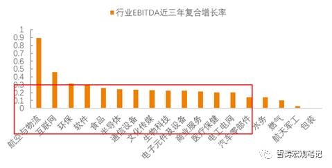 基于此,我們用企業(yè)折舊、攤銷和利息前的利潤(EBITDA)衡量企業(yè)的盈利能力,對高資本開支(CAPEX)行業(yè)的EBITDA復(fù)合增長率進(jìn)行排序,篩選出復(fù)合增長率大于14%的行業(yè)。