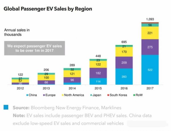 全球電動(dòng)乘用車的銷量不斷增長,在2017年將超過100萬輛。中國是全球電動(dòng)車第一消費(fèi)大國,至今年年底其電動(dòng)車銷量將占全球總銷量的近50%。燃油消耗量限值、新能源汽車積分制度、電池技術(shù)的改進(jìn)、對城市空氣質(zhì)量的關(guān)注以及越來越多的汽車制造商對電動(dòng)車發(fā)展作出的承諾均推動(dòng)了電動(dòng)車市場的迅猛發(fā)展。