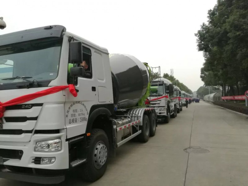 ▲中聯(lián)重科攪拌車從沅江工業(yè)園出發(fā)
