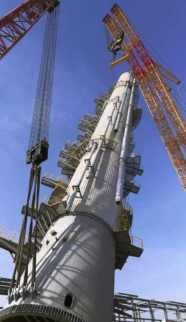 3月4日,備受矚目的大連恒力石化工地,世界最大能級(jí)履帶吊徐工XGC88000(4000噸)成功完成脫異丁烷塔吊裝。