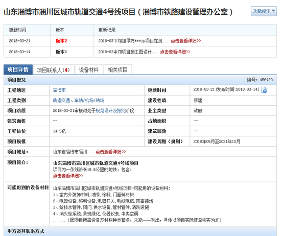 日前,中鐵第四勘察設(shè)計(jì)院集團(tuán)有限公司發(fā)文稱:淄博北站配套工程、淄博市軌道交通首輪建設(shè)規(guī)劃項(xiàng)目組受業(yè)主表揚(yáng),與此同時(shí)淄博市城市軌道交通1號、2號、3號和4號項(xiàng)目一起亮相某工程信息網(wǎng)站,投資金額、施工日期一應(yīng)俱全~