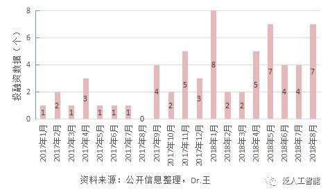 從圖2,我們可以看到2017年以來(lái)機(jī)器人行業(yè)公司投融資數(shù)量月度變化趨勢(shì)。非常明顯,機(jī)器人行業(yè)從2017年初以來(lái),得到風(fēng)險(xiǎn)投資支持的創(chuàng)業(yè)公司數(shù)量越來(lái)越多,形勢(shì)不錯(cuò)。
