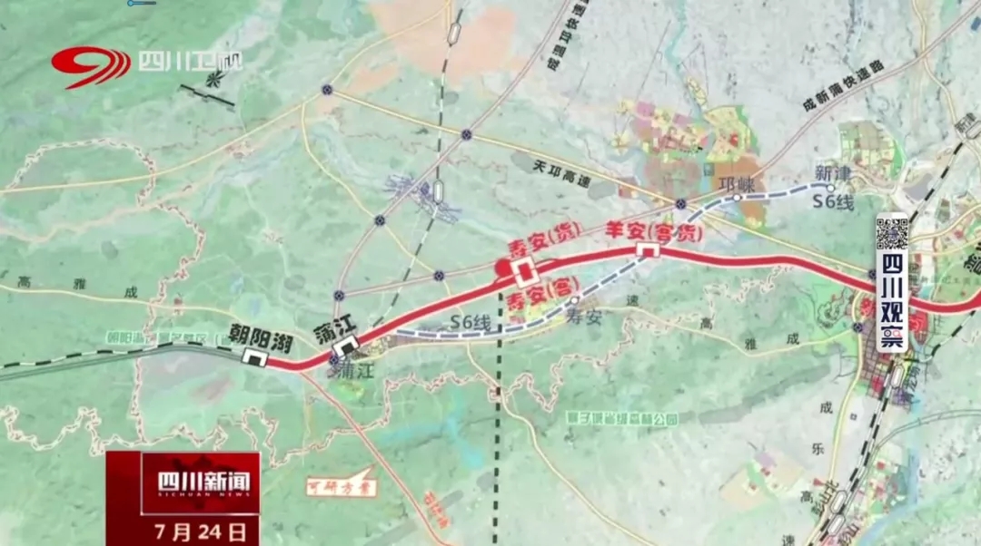 據(jù)了解,鐵路總公司已初步同意,天府站至朝陽湖段,將采用蒲江-邛崍-新津-雙流引入天府新區(qū)的線路,并在壽安設(shè)置站點(diǎn)(包括壽安客站和壽安貨站)及物流基地等,初步確定在成新蒲快速路以南,蒲江河以北,三繞高速以東,臨溪河以西區(qū)域選址布局。
