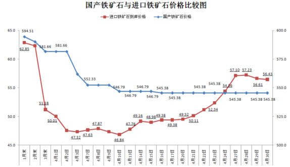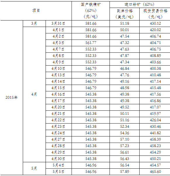 國產(chǎn)鐵精礦和進口鐵礦石價格變化情況表