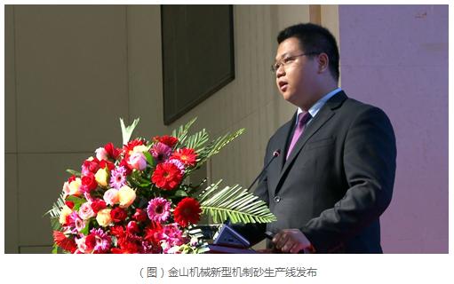 在下午的會議中,進行了金山機械新型機制砂生產線發(fā)布,金山機械機制砂事業(yè)部經理周韜略對金山機械機制砂系統(tǒng)做了全面的介紹。金山機械JSS階梯式制砂系統(tǒng)采用干法生產工藝和集成式布局,系統(tǒng)布局緊湊,生產過程綠色環(huán)保,產品顆粒形狀圓潤、級配連續(xù)穩(wěn)定、石粉含量可控、細度模數可調,是新型制砂工藝的典型代表。