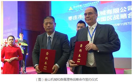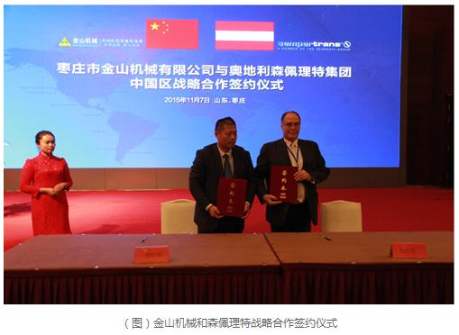 隨后舉行了金山機械與奧地利森佩理特百斯特集團中國區(qū)戰(zhàn)略合作伙伴的簽約儀式。森佩理特百斯特制帶有限公司隸屬于奧地利森佩理特集團,該集團在輸送帶方面有50年的經驗。此次與金山機械達成戰(zhàn)略合作,并在會議上舉行了簽約儀式。兩家具有同樣的客戶群,都有各自領域最先進的設備。金山機械與森佩理特合作,將對自身產品系列進行有力的補充,并強化金山精品骨料生產線的輸送帶系統(tǒng),為用戶帶來更優(yōu)質的骨料生產線系統(tǒng)。