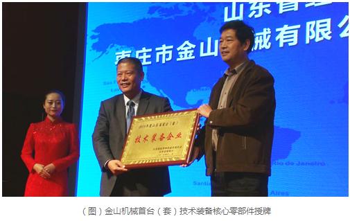 會上,舉行了棗莊市金山機械院士工作站簽約儀式、棗莊市金山機械向中國工程院院士繆昌文院士頒發(fā)聘書儀式。金山機械院士工作站揭牌儀式、金山機械院士工作站“高品質砂石骨料研發(fā)中心”授牌儀式。山東省經濟和信息化委員會委托山東省機械工業(yè)協(xié)會郭金明會長宣讀了山東省金山機械省級技術中心、首臺套技術裝備核心零部件、山東省優(yōu)秀節(jié)能成果獎文件決定,并進行授牌。