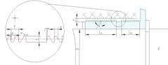 本項(xiàng)目依據(jù)上述技術(shù)原理對(duì)托輥密封結(jié)構(gòu)進(jìn)行了優(yōu)化設(shè)計(jì),所設(shè)計(jì)的新型直通式迷宮密封結(jié)構(gòu)經(jīng)計(jì)算機(jī)仿真和樣品經(jīng)標(biāo)準(zhǔn)試驗(yàn)臺(tái)試驗(yàn),密封結(jié)構(gòu)對(duì)粉塵和淋水具有顯著的密封效果,但對(duì)浸水密封效果不顯著,為此,依據(jù)不增加密封組件數(shù)量和復(fù)雜度,同時(shí),可實(shí)現(xiàn)同一密封結(jié)構(gòu)對(duì)粉塵、淋水、浸水同時(shí)具備顯著密封效果,并易于加工生產(chǎn)的原則,對(duì)托輥密封結(jié)構(gòu)進(jìn)行了進(jìn)一步優(yōu)化設(shè)計(jì),即將密封組件中外密封件添加設(shè)計(jì)螺桿式向內(nèi)雙向螺旋密封(朝向來(lái)流方向后螺紋長(zhǎng)度略長(zhǎng)于前螺紋),在雙向螺紋間設(shè)置儲(chǔ)脂腔并加注防水密封潤(rùn)滑脂的方法。本項(xiàng)目在設(shè)計(jì)螺旋密封時(shí)主要依據(jù)以下技術(shù)原理: