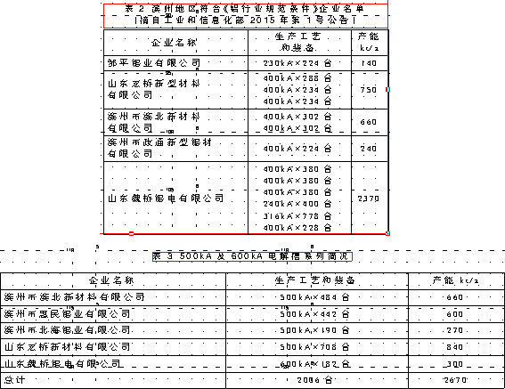 除了表2所列的納入“2015年第1號公告”的鋁電解系列外(表2),據(jù)我們調(diào)查及媒體報道還有600kA及一些500kA未列入符合《鋁行業(yè)規(guī)范條件》(見表3)。這些數(shù)據(jù)可靠可信,既列出了系列的電流強度,又有電解槽數(shù),原鋁總生產(chǎn)能力6830kt/a,共有電解槽6360臺,其中:230kA的224臺;240kA的400臺,316kA的778臺,400kA的2952臺,500kA的182臺,600kA的1824臺。