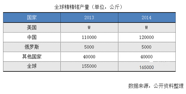 美國地質(zhì)調(diào)查局2015年資料顯示,2013年全球精鍺產(chǎn)量共計155噸,2014年165噸。中國2013年為110噸,2014年120噸,分別占全球總產(chǎn)量的71%和73%。