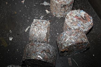 金屬廢屑被“蠻牛”壓成餅狀