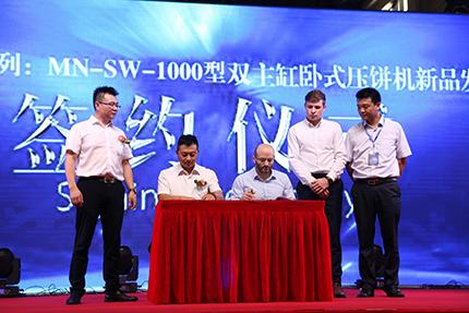 江蘇大隆凱科技有限公司總經(jīng)理胡和榮表示,在“全心全意為客戶服務(wù)、為客戶創(chuàng)造價(jià)值”的理念引領(lǐng)下,該公司研發(fā)部門投入數(shù)千萬資金十年磨一劍,終于研發(fā)成功了“蠻牛”系列MN-SW-1000型雙主缸臥式壓餅機(jī)高端新品。