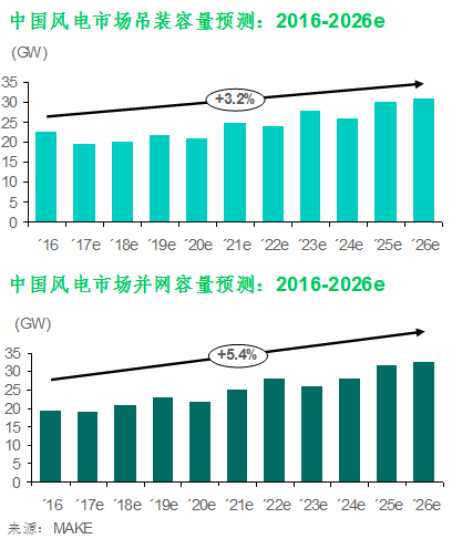 MAKE預(yù)計(jì),2017年甘肅與吉林將沒有新增并網(wǎng)容量,內(nèi)蒙、黑龍江與寧夏各省的新增并網(wǎng)容量將不足300MW;盡管海上吊裝容量預(yù)測上調(diào)194MW,仍無法抵消西北地區(qū)新增容量的大幅減少。