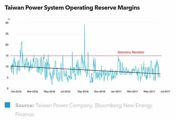 蔡英文政府曾表達(dá)過與特斯拉合作優(yōu)化臺灣電網(wǎng)穩(wěn)定性的興趣。然而,與南澳大利亞的情況很類似,建設(shè)電池存儲系統(tǒng)只是保證電力安全的一個方面,電力監(jiān)管機(jī)構(gòu)難以僅通過儲能而系統(tǒng)性地解決問題??紤]到臺灣的備用容量率過低已是常態(tài),而非僅出現(xiàn)在某幾天尖峰時段,政府必須同時考慮建設(shè)更多發(fā)電容量、補(bǔ)貼需求響應(yīng)容量,或讓閑置的核電站重新上線。