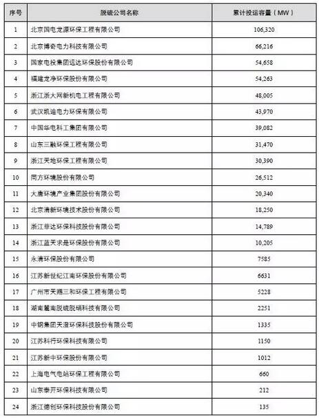 (按2016年底累計(jì)投運(yùn)的煙氣脫硫新建工程機(jī)組容量大小排序)