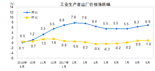 2017年9月份工業(yè)生產(chǎn)者出廠價格同比上漲6.9% —— 文章正文2017-10-17
