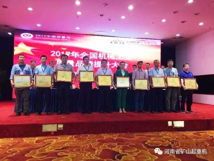 2017年9月26日,中國機(jī)械工業(yè)聯(lián)合會授予河南省礦山起重機(jī)有限公司“礦源牌橋式起重機(jī)”為“中國機(jī)械工業(yè)名牌產(chǎn)品”。