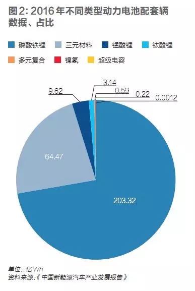 國內(nèi)的動(dòng)力電池以磷酸鐵鋰電池和三元電池為主,其中磷酸鐵鋰主要供應(yīng)客車,三元電池主要供應(yīng)中高端乘用車。新能源客車此前引領(lǐng)了國內(nèi)新能源汽車的發(fā)展,因此,鐵鋰電池是當(dāng)前國內(nèi)電池產(chǎn)能的主力。中國汽車技術(shù)研究中心的數(shù)據(jù)顯示,2016年中國生產(chǎn)的新能源汽車中,磷酸鐵鋰電池總配套量為203.32億Wh,占比72.26%,其中的72%供應(yīng)給純電動(dòng)客車;三元電池總配套量為64.47億Wh,占比22.91%,其中的73%供應(yīng)給純電動(dòng)乘用車。