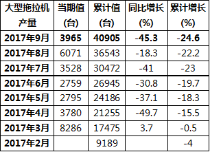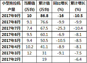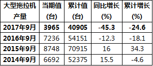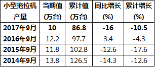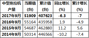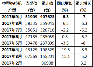 9月份大拖產(chǎn)量銳減 中拖繼續(xù)攀升 小拖略有上升 —— 文章正文2017-11-07
