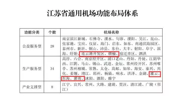 根據(jù)《江蘇省“十三五”及中長期通用機(jī)場布局規(guī)劃》(簡稱“規(guī)劃”)顯示,全省通用機(jī)場將在“十三五”布局16個(gè),至2020年布局35個(gè),遠(yuǎn)期布局規(guī)模為70個(gè)(包括10個(gè)國家級(jí)通用機(jī)場和60個(gè)市級(jí)通用機(jī)場)。其中,就包括灌云、東海、灌南、贛榆、開發(fā)區(qū)5個(gè)通用機(jī)場。