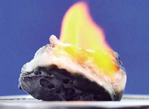 俗話說水火不相容。但是有這樣一種冰,不僅可以燃燒,其熱值還比石油多10倍,燃燒后很清潔,只生成二氧化碳和水,儲量據稱可供人類使用千年。這就是可燃冰,學名叫做“天然氣水合物”,也被人稱作“固體甲烷”,是甲烷為主的有機分子被水分子包裹而成,既含水又呈固體,看起來像冰,很容易被點燃。