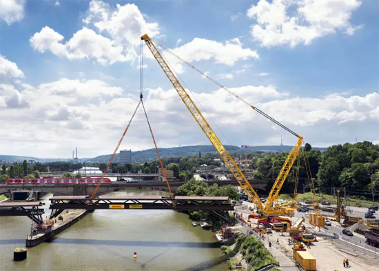 作為斯圖加特21基礎(chǔ)設(shè)施項(xiàng)目的一部分,必須拆除一座人行天橋,以便在巴登-符騰堡州首府新建一座鐵路橋。起重機(jī)承包商Wiesbauer將其利勃海爾LG 1750桁架臂起重機(jī)組裝在內(nèi)卡河河岸上用以移除木橋。盡管橋梁重量明顯高于預(yù)期,但利勃海爾起重機(jī)成功完成了這項(xiàng)工作。