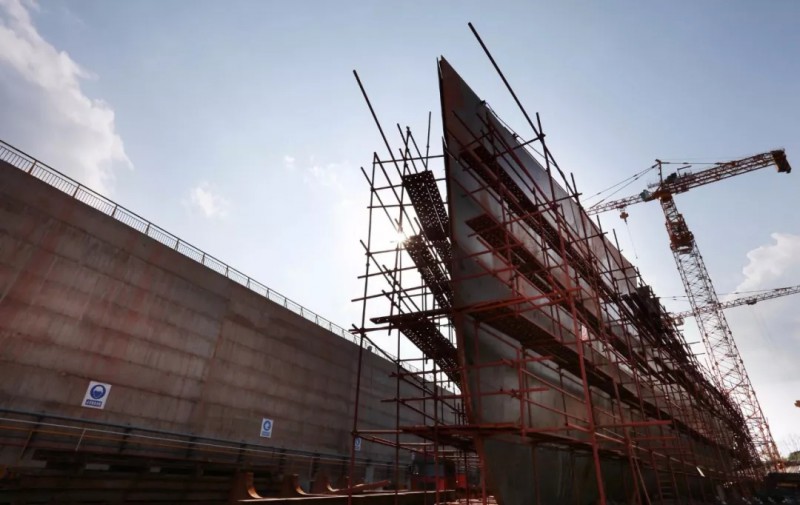 2018年2月22日,通過無人機在四川省大英縣郪江上空俯瞰正在建造中的“泰坦尼克號”,其龐大的體量讓人震驚。郪江作為中國西部的一條小型河流,此前并未有大型船只通航歷史,如今,“復(fù)活”的泰坦尼克號郵輪完全按照100年前原泰坦尼克號郵輪的設(shè)計圖紙和實際尺寸1:1還原,造價大約為10億元人民幣,雛形已現(xiàn)。