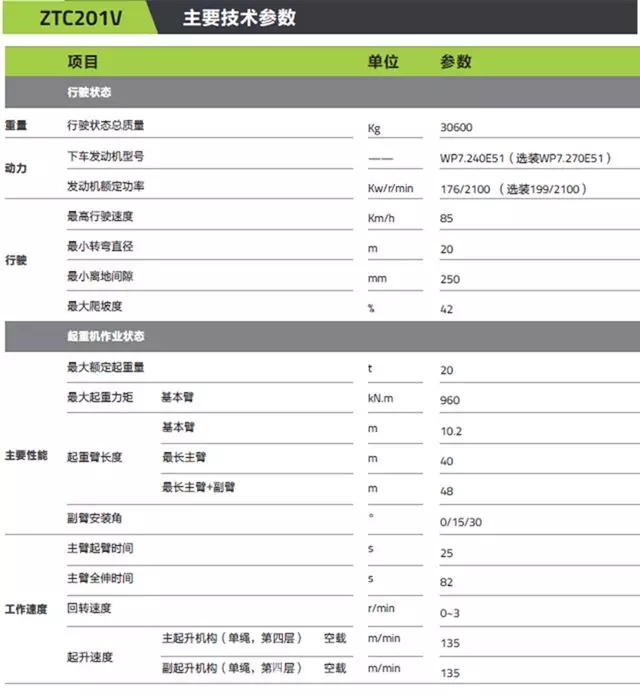 ZTC201V551卷?yè)P(yáng)最大速度>135m/min,回轉(zhuǎn)最大速度>3r/min,起臂時(shí)間<25s,動(dòng)作快效率高;最低穩(wěn)定速度達(dá)2.5m/min,回轉(zhuǎn)最低穩(wěn)定速度達(dá)0.1°/min,實(shí)現(xiàn)低速穩(wěn)定可靠,吊裝對(duì)位精準(zhǔn)。