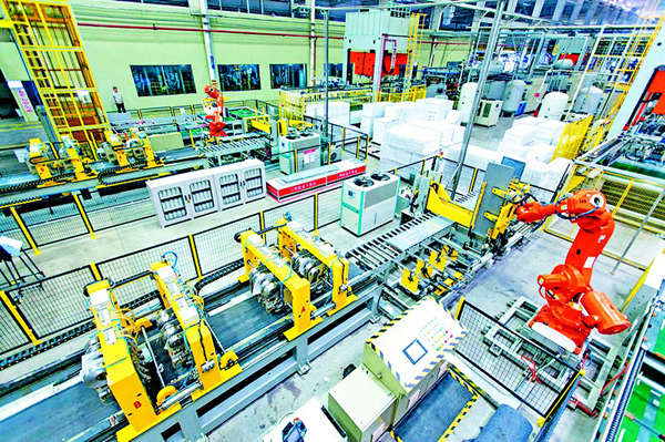 在物料搬運(yùn)環(huán)節(jié),企業(yè)在自動(dòng)化設(shè)備的前提下改造加入了智能化設(shè)備,在部分生產(chǎn)環(huán)節(jié)已實(shí)現(xiàn)無(wú)人操作,通過(guò)這些智能化的改造以后,在搬運(yùn)的過(guò)程中,通過(guò)碼垛手進(jìn)行碼垛,碼垛完以后,就由碼垛機(jī)器人發(fā)送指令給AGV自動(dòng)搬運(yùn)車,然后由AGV自動(dòng)搬運(yùn)車將貨運(yùn)到倉(cāng)庫(kù)指定的位置,實(shí)現(xiàn)機(jī)器指揮機(jī)器的工作。