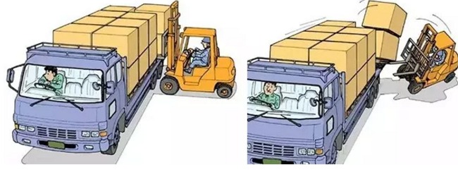 4、在卸貨時,司機離開叉車座位,叉車遷移,將裝卸工夾住。
