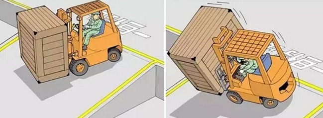 3、叉車司機叉運兩包袋裝物品裝車,向后倒車時猛打了轉(zhuǎn)向,叉車發(fā)生側(cè)翻。
