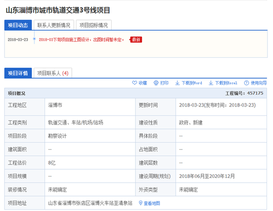 信息顯示淄博市軌道交通4號線項(xiàng)目為一條全長16.6千米地鐵,連接清泉至淄川站。建設(shè)周期(規(guī)劃)2018年6月至2021年12月。