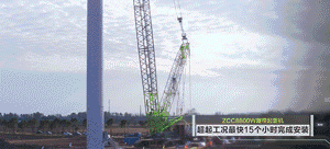 ▲中聯(lián)重科ZCC8800W型履帶起重機(jī)風(fēng)電吊裝施工