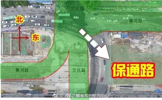 鄭州黃河路與因地鐵5號線文化路站施工需要,自2018年04月26日晚間起,文化路黃河路交叉口以西保通路向南平移,交叉口以南保通路向西平移,四個方向車輛將沿新建保通路通行,保通路與現(xiàn)有路面寬度一致。