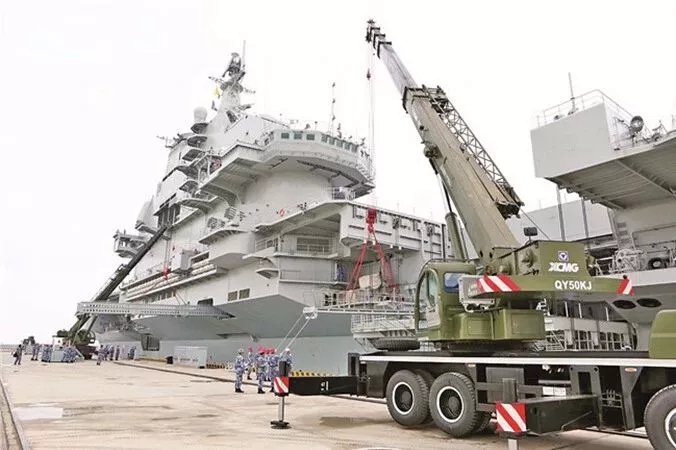 據相關媒體報道,近日,中國首艘自主建造的001A航母,正在進行最后的收尾工作,甲板上已經開始全面清理,此前密集的施工腳手架已經拆除,即將涉水海試!而更引人矚目的是,7臺徐工起重機出現(xiàn)在飛行甲板上!