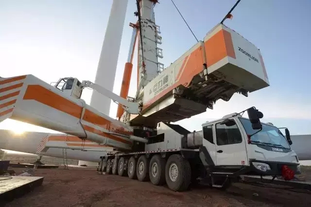 ▲中聯(lián)重科QAY2000在陜西定邊風(fēng)電施工現(xiàn)場