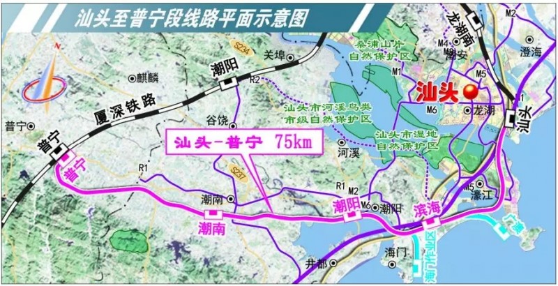 圖 6-2-5 汕頭-普寧段線路平面示意圖