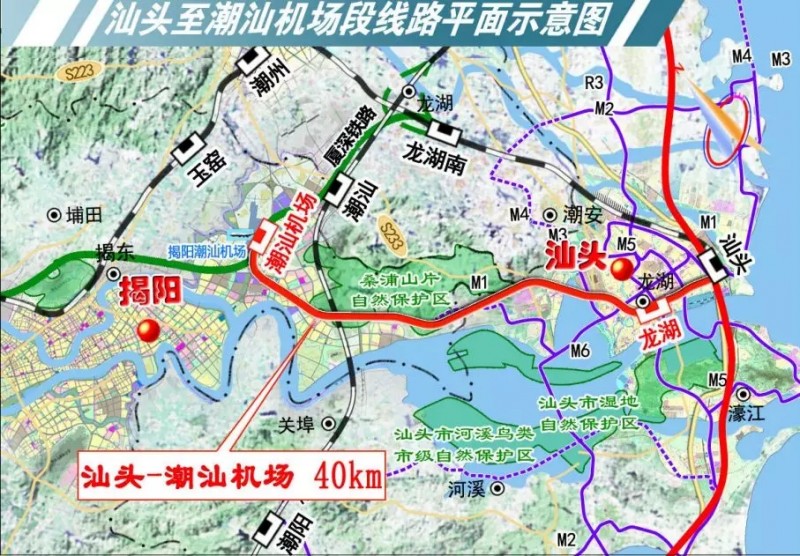 圖 6-2-3 汕頭-潮汕機場段線路平面示意圖