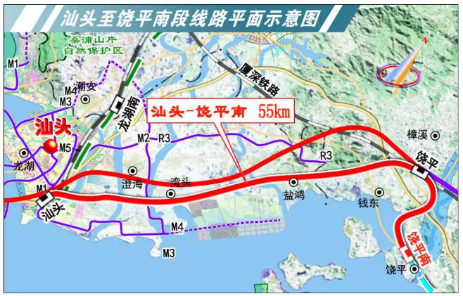 圖 6-2-6 汕頭-饒平南段線路平面示意圖