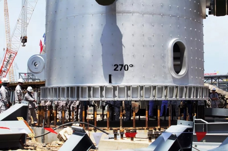 據(jù)吊裝現(xiàn)場(chǎng)服務(wù)工程師王瑜介紹:“600萬(wàn)噸/年柴油加氫裝置一段反應(yīng)器的外徑尺寸約5米,高約51.368米,起升總高度為110.9米。起重機(jī)產(chǎn)品額定工作載荷為1913噸,負(fù)載率為78.8%,這對(duì)起重機(jī)產(chǎn)品吊裝性能要求非常高。不僅如此,吊裝也受到天氣條件的影響,風(fēng)速過(guò)快會(huì)直接影響吊裝的穩(wěn)定性,增加施工難度。”