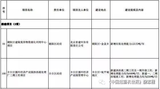 9.垃圾處理設施項目3個,重點實施豐臺區(qū)循環(huán)經濟產業(yè)園滲瀝液處理廠二期工程、朝陽區(qū)建筑垃圾資源化處置項目等。